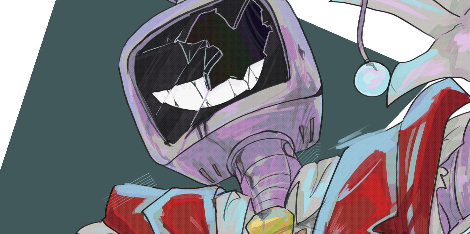 An alternate timeline of WorstEnd in particular where after Tenna got away, he managed to only repair certain aspects of himself. He seems to have no memory of the things that lead to this point anymore and he cannot remember them at all, likely never will.This is probably for the best, in the end. He feels a strong connection to Battat despite everything, and she will likely be the only one he's capable of bonding with properly as she is the only one that he likely will be able to trust. Unlike his other version, he's only aggressive if people provoke him or attack Battat.In nature, He is slightly prone to acting a bit ... catlike? Sometimes crawling on all fours, a sort of 'whirring' being akin to a purr from him, et cetera. He's rather large still, and can no longer properly shrink for the most part due to how he's broken. The insides of his monitor are exposed, and he's 'broken' in a different way from the typical damage done to his lightner form.He speaks in a glitched out manner that's a little hard to understand, typed out in all caps + leetspeak in a way.Tenna does not want to be touched or 'repaired' by anyone that he doesn't find himself close with, as he only trusts one particular Battat and likely is suspicious of other versions. Due to damage, he is also Red-Blind (Protanopia), and due to this he distinguishes his Battat based on her personality which he caught onto rather fast.
